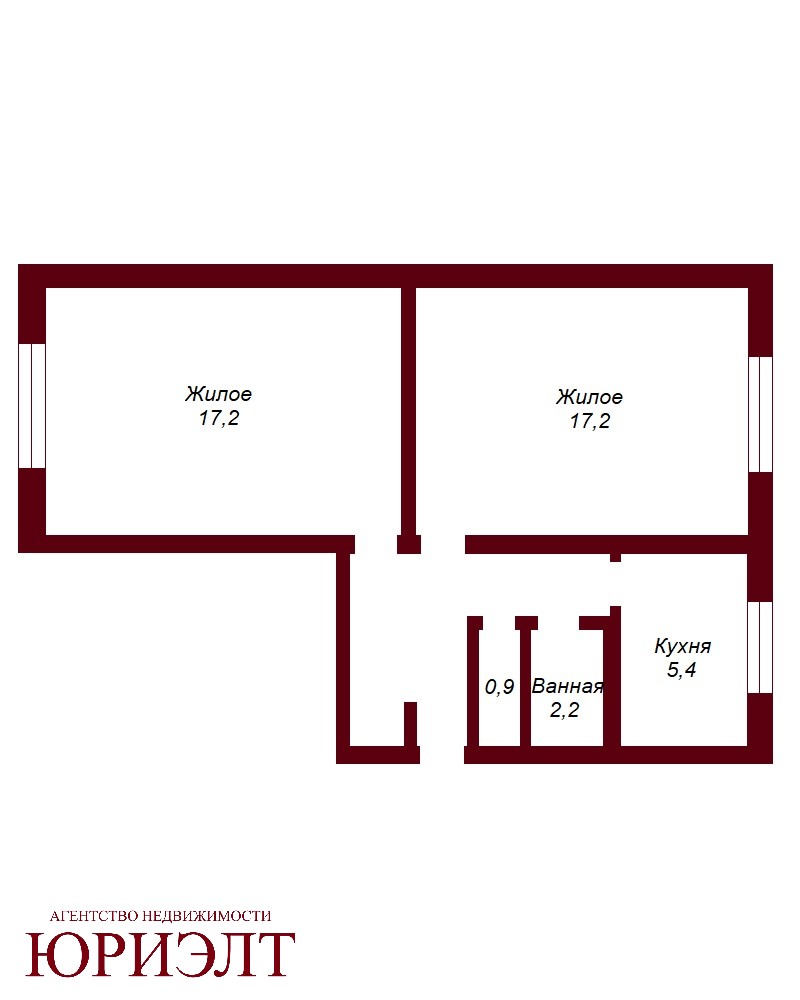 Квартира расположена на первом этаже, что обеспечивает легкий доступ. Площадь кухни составляет 5,4 кв.м., а две комнаты по 17, 2 кв.м. предлагают достаточно пространства для комфортного проживания. В прихожей оборудована гардеробная.