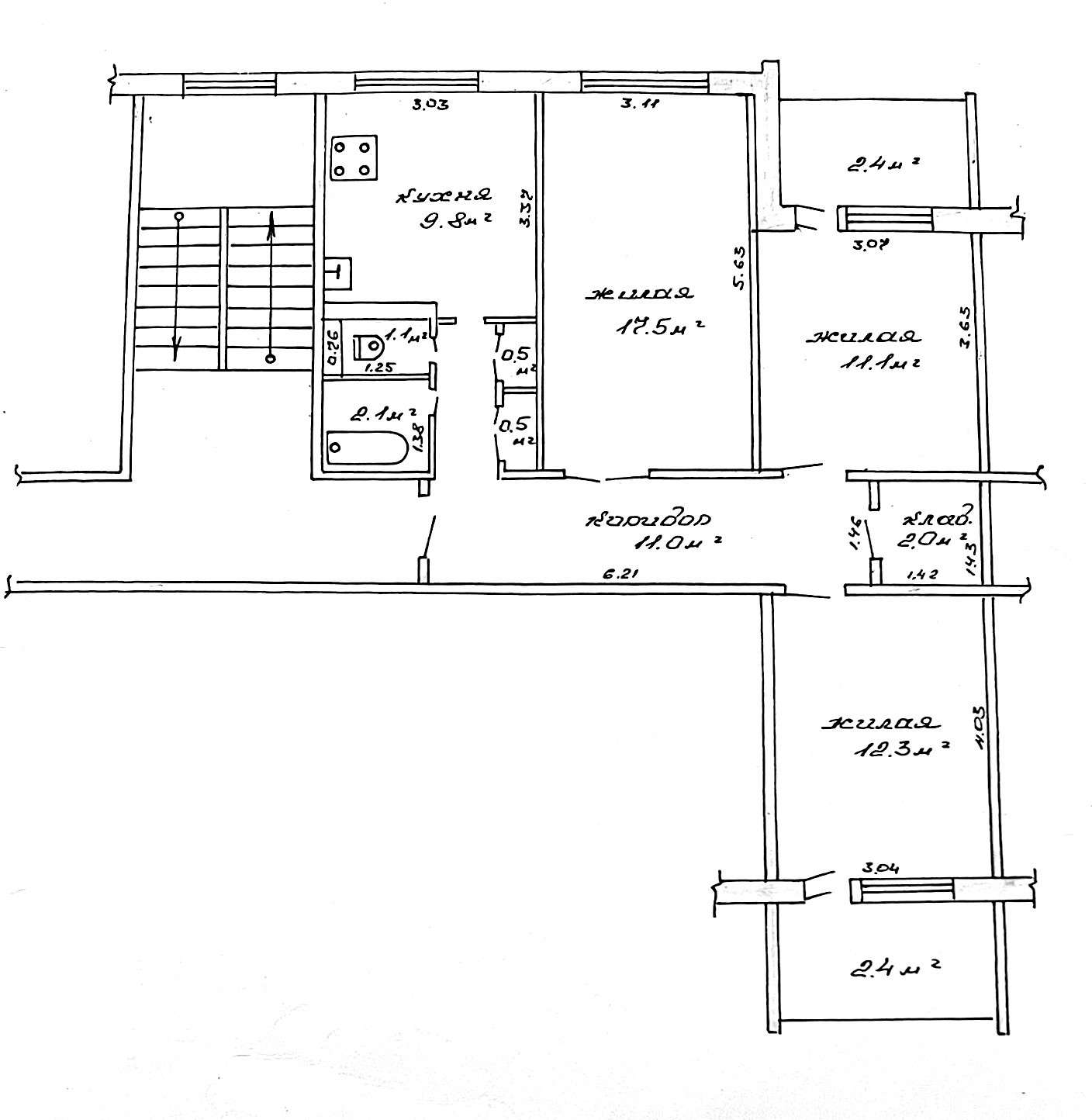 Квартира общей площадью по СНБ – 72,7 м², общая жилая - 67.9 м², жилая – 40,9 м², кухня – 9,8 м².